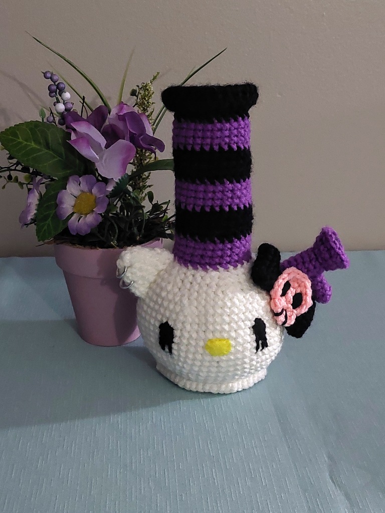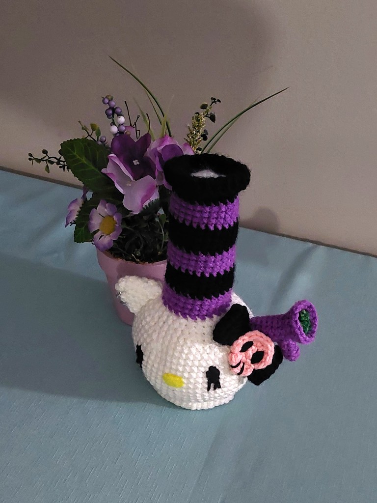I got a couple of requests of custom bong plushies! First was a big purple striped one, then a really cool goth Hello Kitty one. I’m really happy with how they both turned out!