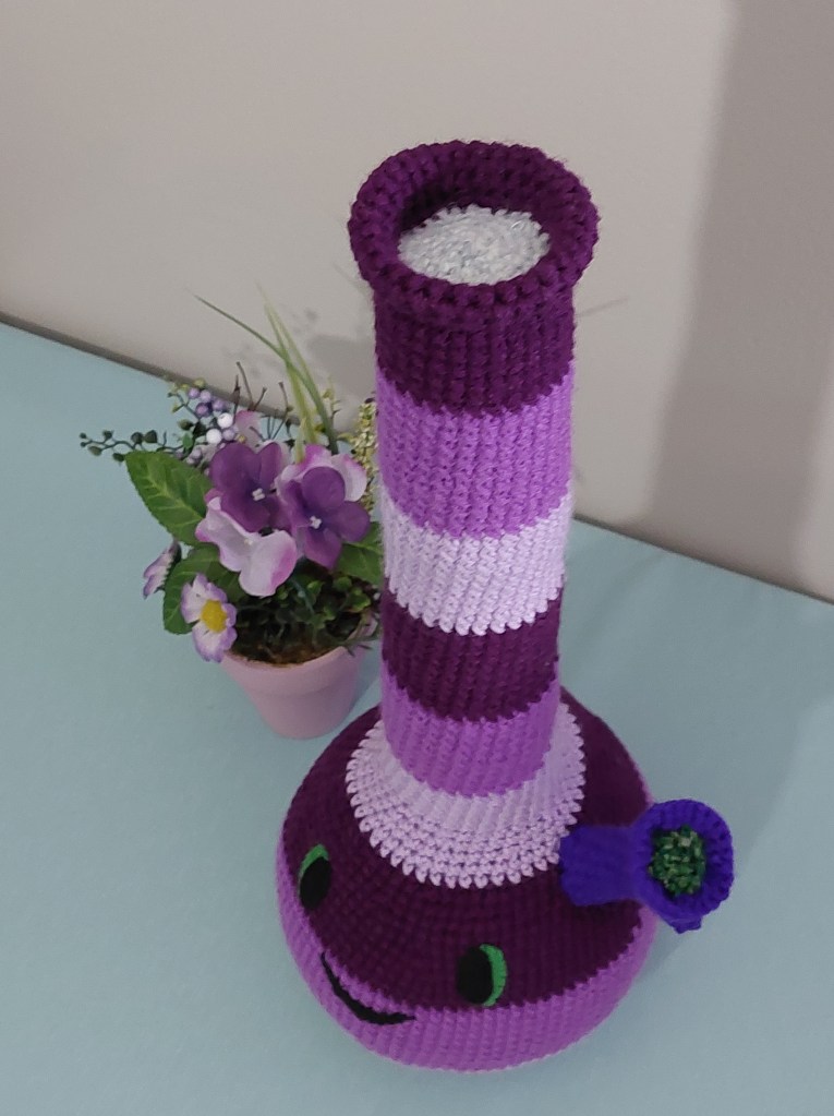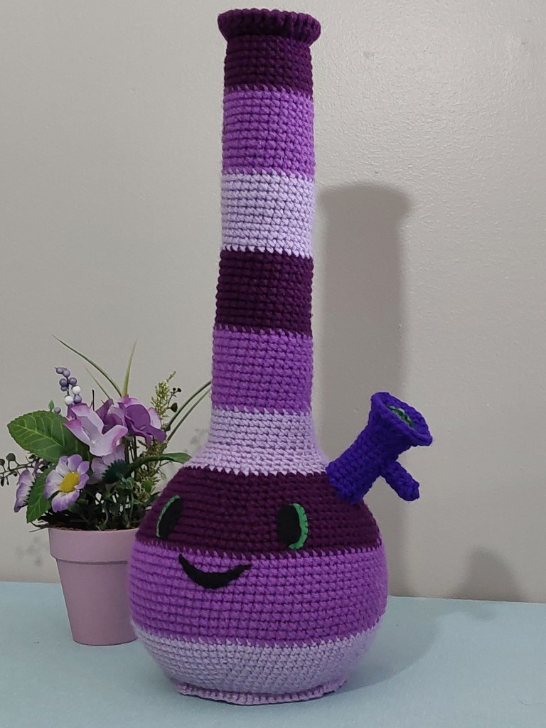 I never would have imagined my crocheting would lead me to making plushie bongs. I thought I’d be making dragons and frogs, or even hats and bags! And I do intend to make more of those in the future (the dragons and frogs, that is) but for now, I’m having a surprising amount of fun crocheting these interesting and unique plush bongs!