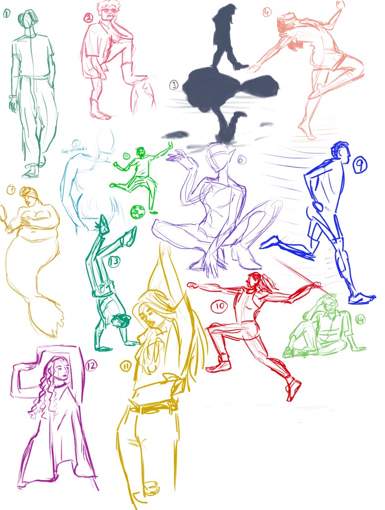 I think another reason it was easier this time around was because I wasn’t being precious with the references at all: I decided to use every single photo that I found on my search of the word “poses” – excluding other people’s drawings, I drew everything that came up for my search. So that definitely expedited the process a great deal!