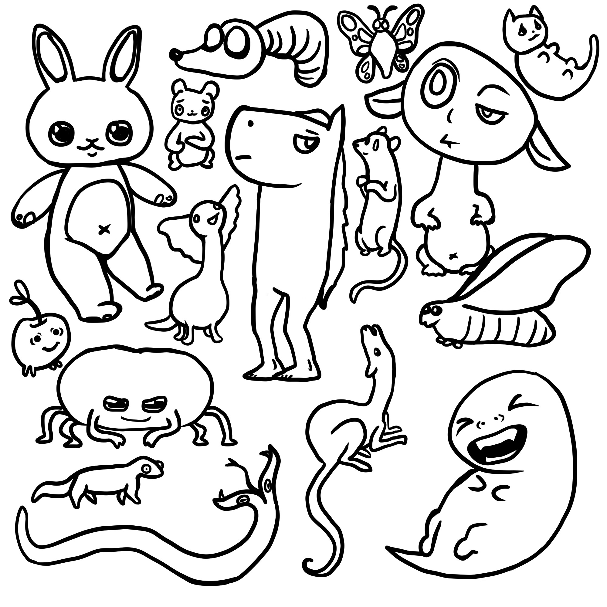 First, there’s a collection of Little Guys doodled in bold black on white. This one was inspired by an episode of my favourite YouTube channel, Drawfee, in which the four artists drew a bunch of “little guys”, which means something different to each artist. It’s a really fun channel! Here’s a link to that video.