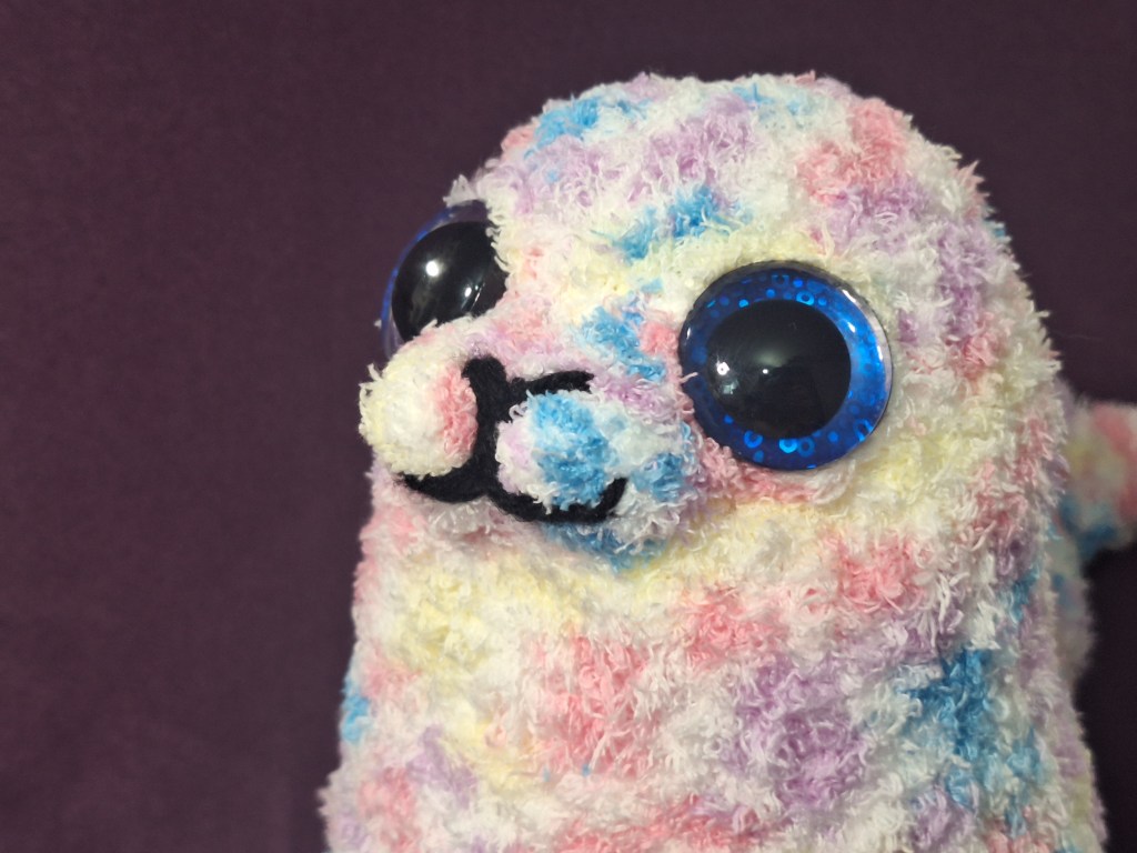 My most recent creation was a very large, plush seal pup! I think it turned out incredibly cute, and I’m very happy with it. I’m thinking I’ll try out using more kinds of yarn like this for other big plushies in the future!