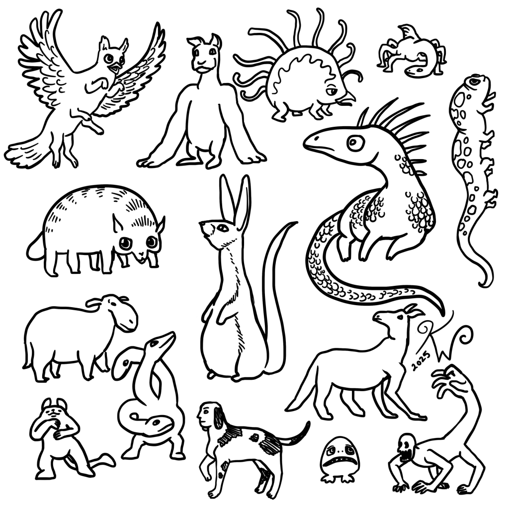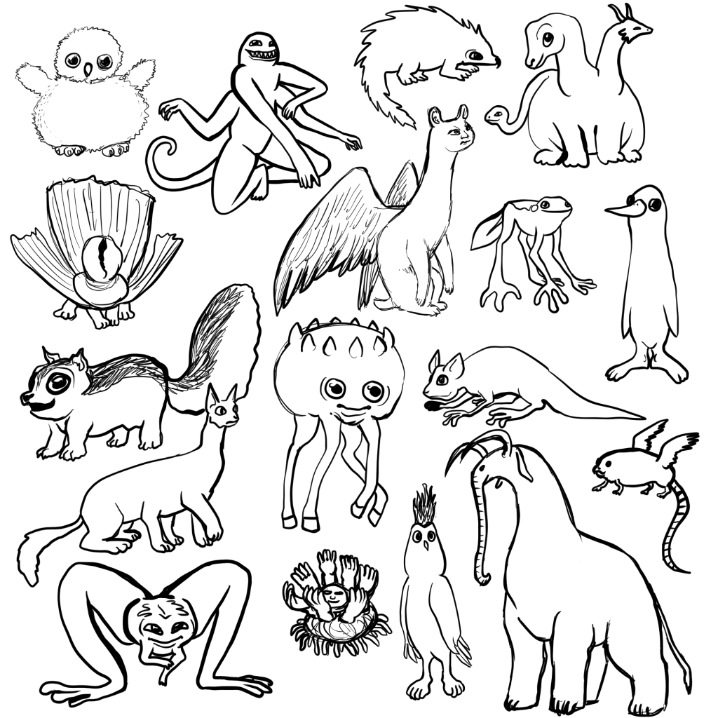 Lately, I’ve been drawing collections of strange creatures. No particular reason, no goal, but it’s been pretty fun coming up with all the different designs I can think of.