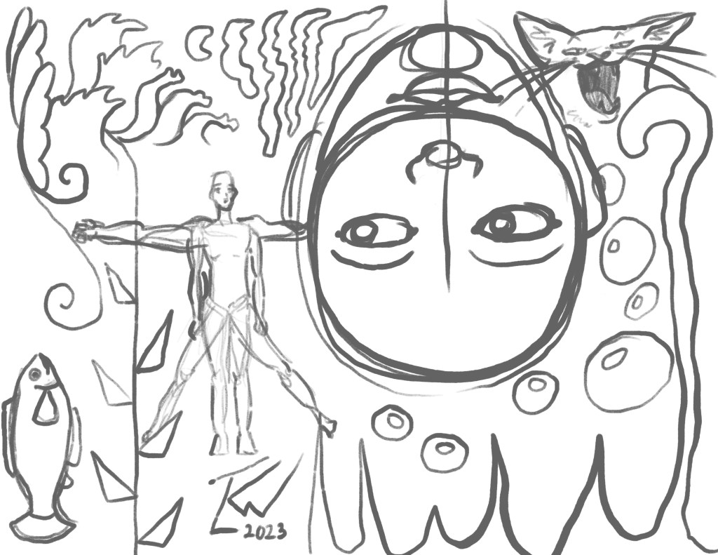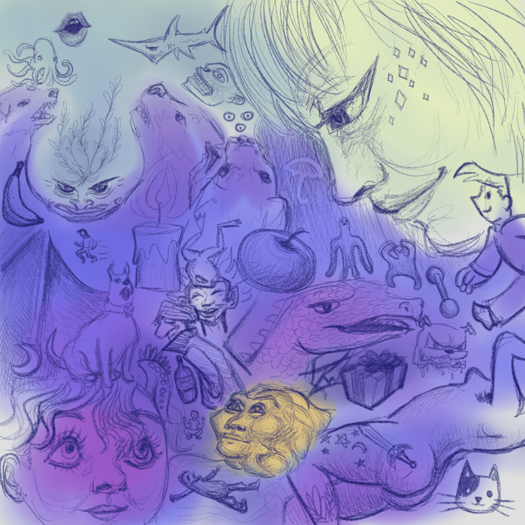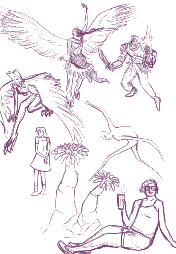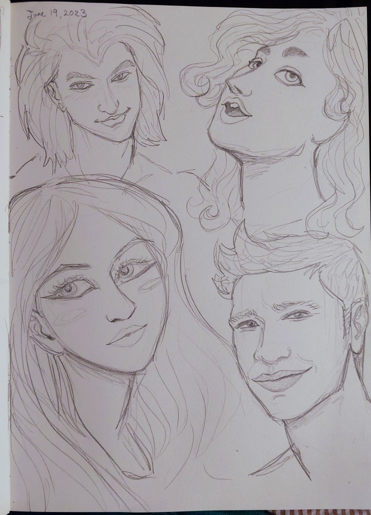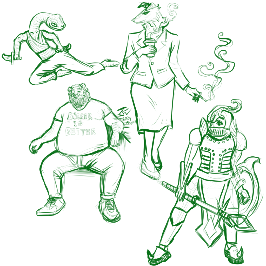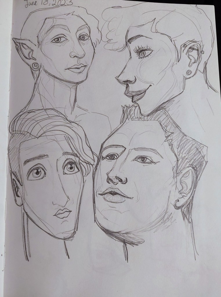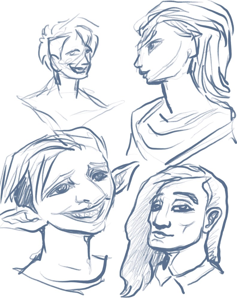 These are all of the rough ideas and generally unfinished or unpolished images I sketched. The majority were made using Procreate or Clip Studio Paint on my iPad Air 5, though there might be a few in traditional pencil or other mediums. My go-to is my iPad, but I do still like to draw with different mediums sometimes.